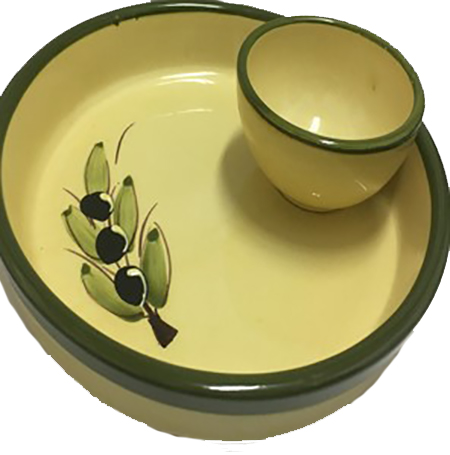 Plato para aceitunas artesanal con deposito para los huesos de la aceituna.